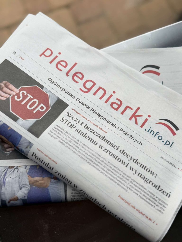 Ogólnopolska Gazeta Pielęgniarek i Położnych każdego miesiąca trafia do ponad 500 szpitali w całej Polsce. W ostatnich dniach ukazał się najnowszym numer Gazety, w którym poruszamy między innymi kwestię postulatu zmian w zasadach ustalania minimalnych norm obsady pielęgniarek.