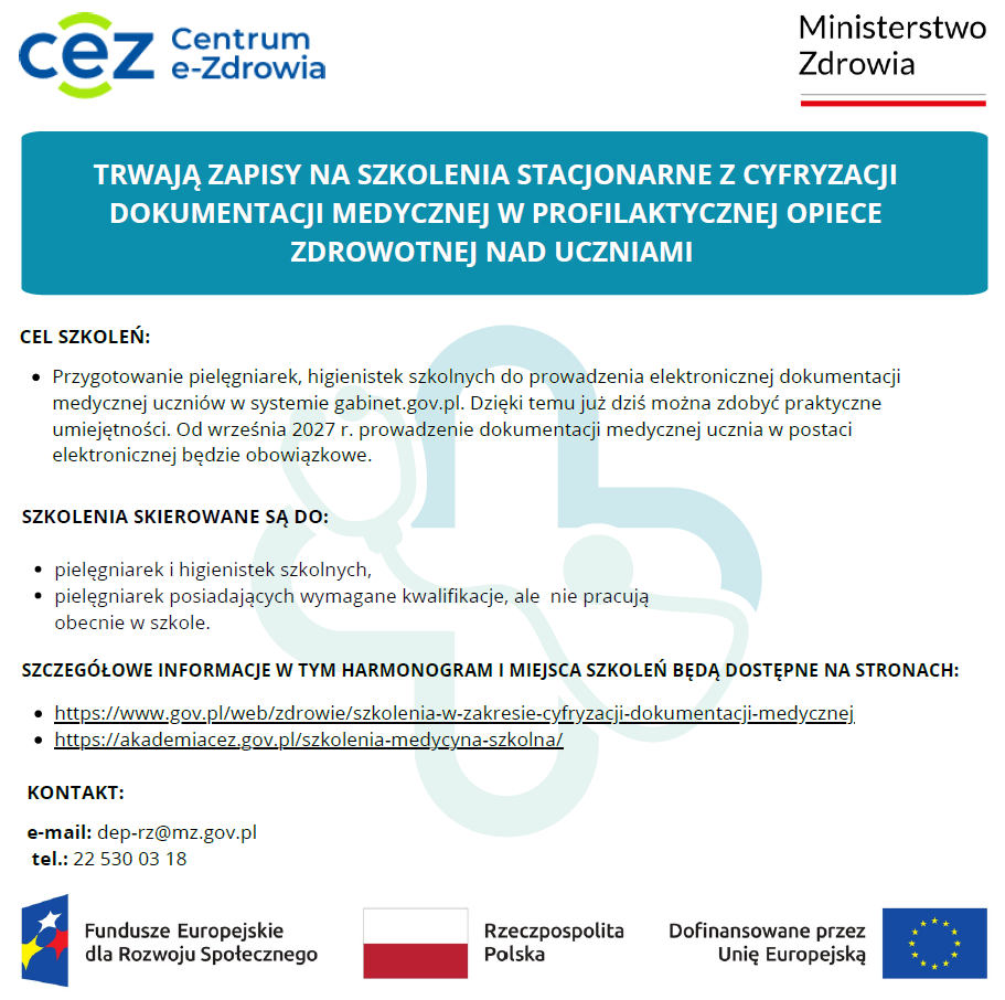 Trwają zapisy na szkolenia stacjonarne z cyfryzacji dokumentacji medycznej w profilaktycznej opiece zdrowotnej nad uczniami.